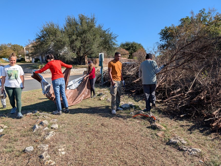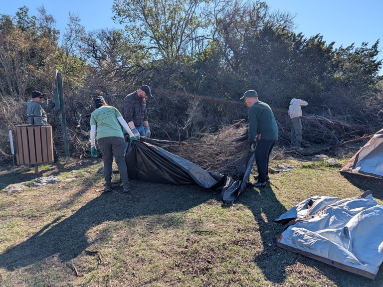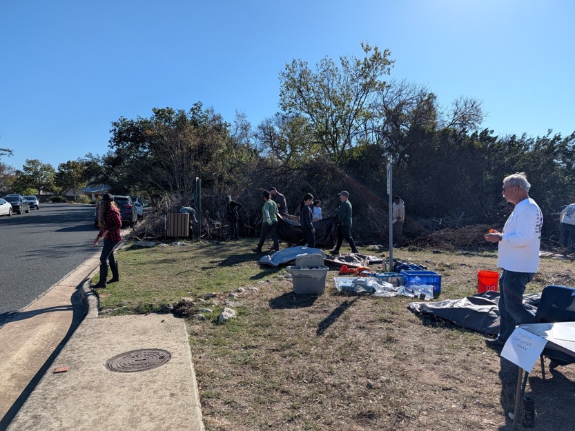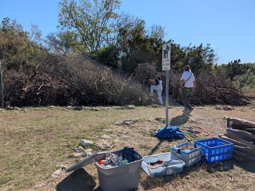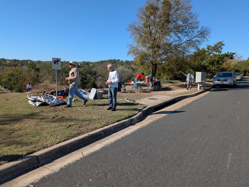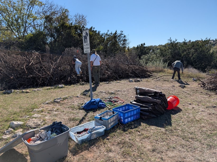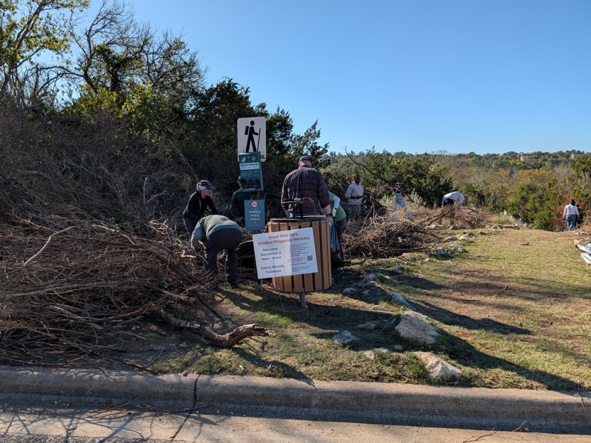 Introductory talk and instructionsSome of the 64 volunteers who participatedRegistration and drinks tableBuilding the brush pileStacking brushUsing tarps to haul large loadsTaking a break (including Marc Duchen)Organizing the brush pileTaming the brush pileRetrieving orange marking tapeSierra Nevada trailhead brush pilePlayscape area brush pileCollecting brush near the playscape